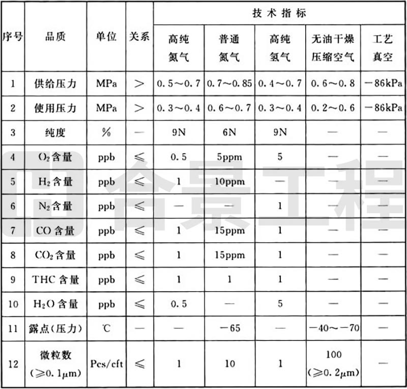 表B.0.1 工藝動(dòng)力品質(zhì)(氣體)要求