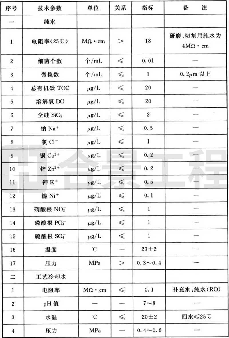 B.0.2 發(fā)光二極管生產(chǎn)工藝動(dòng)力品質(zhì)(水)要求可按表B.0.2執(zhí)行。